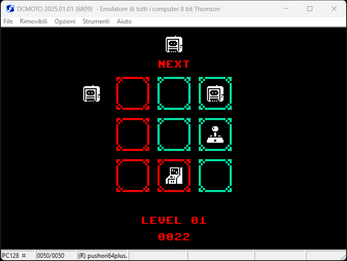 PUSHORI64+ is a game written in ugBASIC and that runs on various 8-bit home computers like AMSTRAD CPC 664, ATARI 400/800, COLECOVISION, COMMODORE 128, COMMODORE 64, MSX, OLIVETTI PRODEST PC128, SEGA SG-1000, SEGA SC-3000, THOMSON MO5, TANDY CORP. COLOR COMPUTER 3, ZX SPECTRUM 48K.